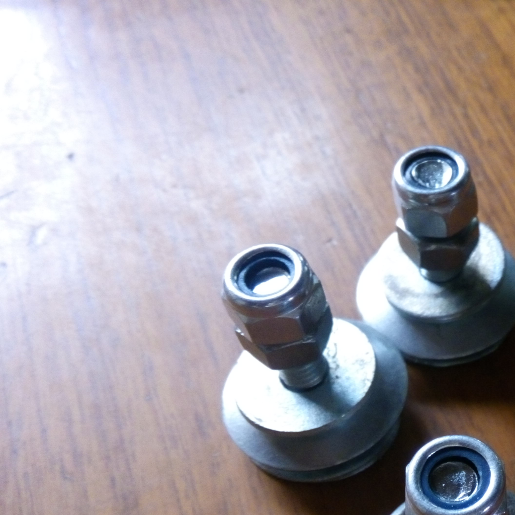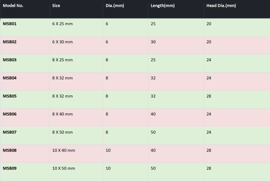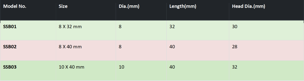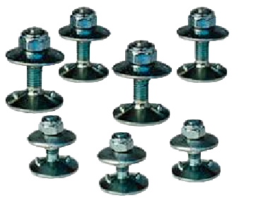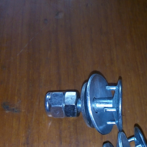 Concave bolt head with 4 lugs on the underside to prevent rotation when tightening