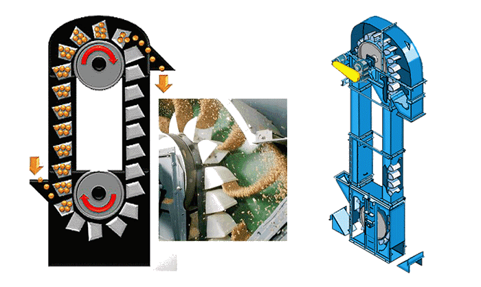 Bucket Elevators are highly functional and are in various applications as vertical lifting of material such as Maize, Bajra, coffee, rice, food grains and other granular materials. Design is in such a way that On-site increase or decrease in height is possible. Higher speed of pulleys discharges material by centrifugal action. UHMWPE lining minimizes any type of wear and increases efficiency. Zero speed switch and Hold – Back device ensures complete safe operation. Minimum maintenance is required due to self cleaning and self aligning pulleys supported by flanged bearing units at both the ends. High speed operation moves higher volumes in optimum size. Drive through geared motor ensures low power consumption.